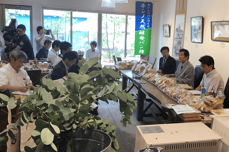 この製造試験にあたっては、東京の(有)ホシノ天然酵母パン種にご協力を仰ぎました。ホシノ天然酵母パン種は、パン作りに有用な天然酵母を麹による日本古来の醸造法で育成し、乾燥粉末にする独特の製造技術を保持しており、このパン種を使って製造したパンは古くから多くのファンを引きつけています。福山にもこのパン種を使っているパン屋さんが数多くあります。