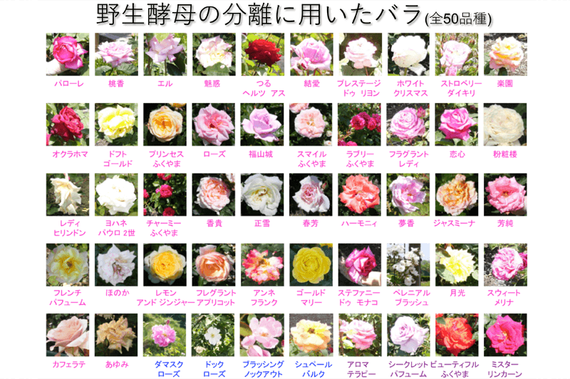 本プロジェクトでは、福山市の園芸センターで栽培されたバラを採取し、そこに生息している野生の酵母を分離して、その遺伝学的特質や発酵力などをつぶさに解析していきました。