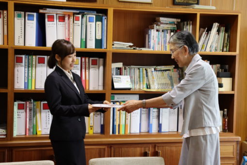 【生命栄養科学科】食育授業の報告に学長室を訪問!