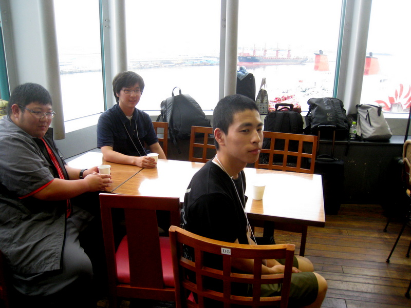 ATCのレストランでの交流会です。ジュースで乾杯。窓の外は、さんふらわあ号が見えて良い眺め