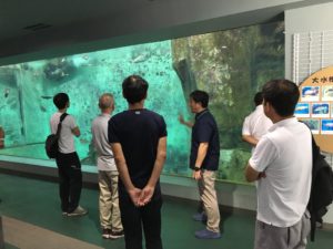 附属水族館マリンバイオセンターにて、アクアリウム科学研究室の学生たちが飼育管理をしている瀬戸内海を中心とした魚介類の展示をご覧いただきました。