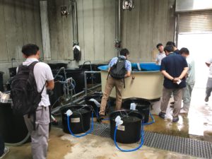 その後、沿岸資源培養学研究室の魚介類飼育施設をご案内しました。