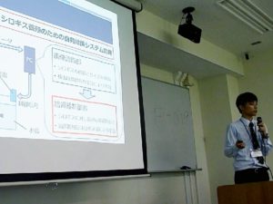 情報工学科4年の黒木君とともに参加し、他の研究についても勉強する良い機会となりました。
