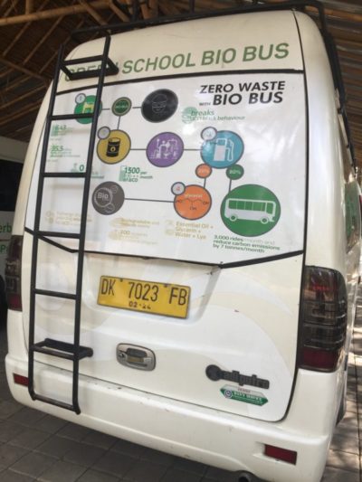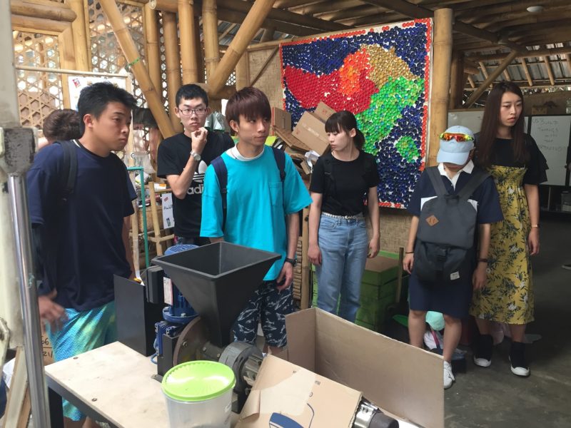 現在、バリ島ではほとんどのスーパーとコンビニでレジ袋をもらうことができません。この”Bye-bye Plastic Bag”という活動を2015年に始めたのは、Green School Baliという学校の生徒たちです。彼らは、バリ島からレジ袋をなくすためにハンガーストライキまでして、大人たちや行政に訴えました。Green School Baliの校舎はほとんどが竹でできています。送迎バスはバイオバス、給食はオーガニックのベジタリアンフードという徹底ぶりで、詳しくは書ききれませんが、教育方法も自主性を重んじるかなりユニークなものです。世界41ヶ国、500人以上の生徒・児童がこの学校で学んでいますが、寮は無く、入学のために家族でバリ島に引っ越してくる必要があります。学校内の施設を見学するだけでなく、貴重なお話を聞くことができました。