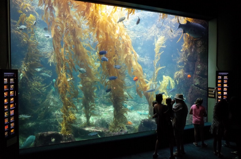 水族館は、巨大なケルプのある水槽がメインになっています。巨大なケルプはサンディエゴの海の豊かさを象徴するものです。また、スクリップス研究所が育成に取り組んでいるサンゴやタツノオトシゴの展示も豊富でした。これは、研究所が運営しているからこそ、最新の技術を使用した展示が行えるのだと思いました。
