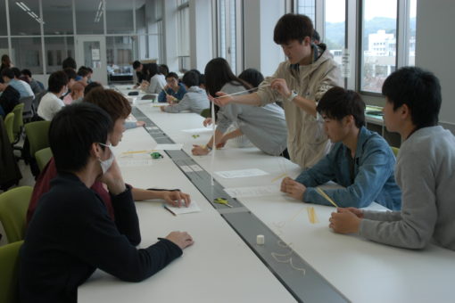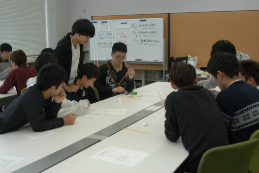 世界記録といわれている高さの99cmには届きませんが、作ったものを検証し、悪かった点を修正して、そして再び作ることを繰り返すことで、より良いものを作ることができる…というモノづくりの最も基本となるポイントを体感して実感してもらうことができたオリエンテーションとなりました。
