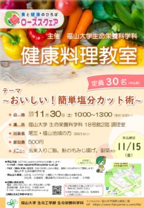 今回は、新たな事業の一つである『健康料理教室』についてお知らせします。(生命栄養学長室ブログ担当S)