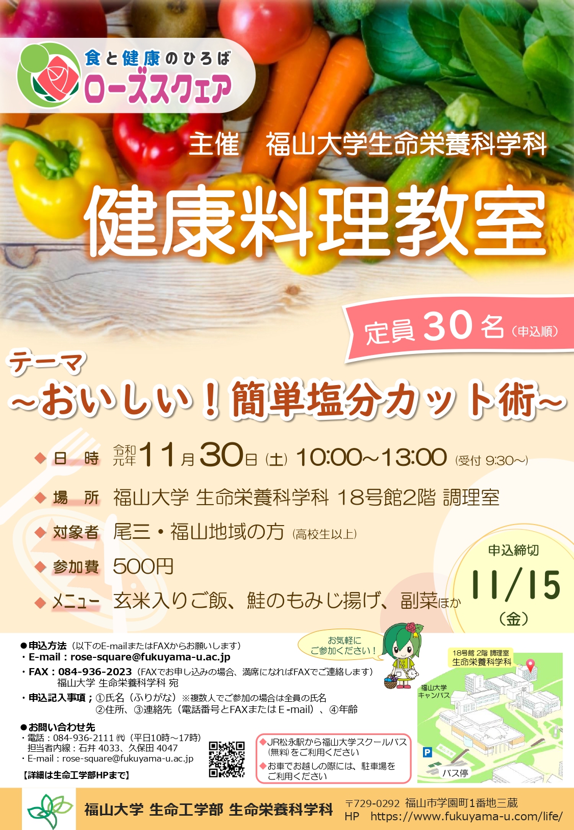 『健康料理教室』は、高校生以上の方が対象で『栄養』や『健康』をキーワードに実施します。