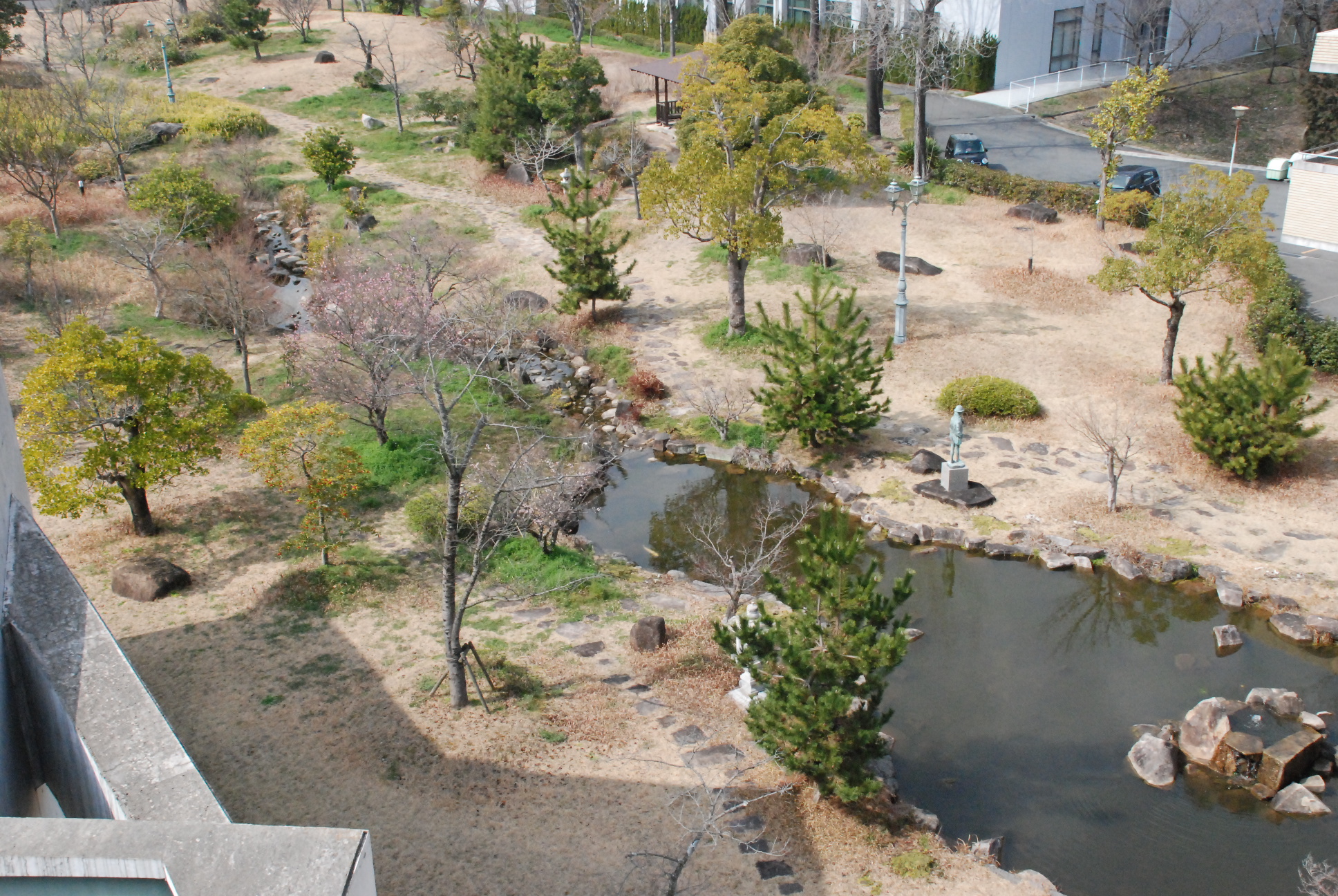 学長から一言:私の通学路から、青い空をバックにして緑の丘の向こうに、赤いクレーンがくっきりと見えます。。。「がくちょさん、ありゃー、気になるんじゃが、なにをしよるん?」「新しい薬学部などができるんですよ」「ええっ?また新しい建物がたつん?!」というような会話も地元の人と。。。『未来創造館』にご期待ください!!!
