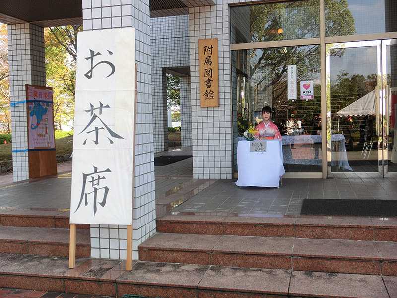 学長から一言:お菓子目当てに茶道部顧問をしていると、学長に言われている山本生命工学部長ですが、大学祭ではちゃんと顧問らしく面倒見よく、こうして学長室ブログまでしたためて。。。これも立派な、お・も・て・な・し!!!