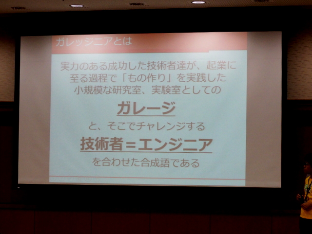 今回、会場で発表してくれたのはスマートシステム学科1年生の行平さんで、デベロッパ部門に続いての登場です。私もサポート役として少しだけステージに立ちました。今回、会場に持っていったものは、土砂災害発生時に空中の飛行ロボット(ドローン)から地形などの広域情報を収集し、ドローンによって運搬された地上ロボットで、気温や湿度やガスなどの局所的情報を収集し、避難などに役立てようというものです。しかしながら、会場内でドローンを飛行させるのは危険なので、黒子の私がドローンを手で持ち、ドローンのカメラからの映像で行平君が無線操縦で地上ロボットを動かします。また、会場には土砂災害を模した山のジオラマを持ち込みました!