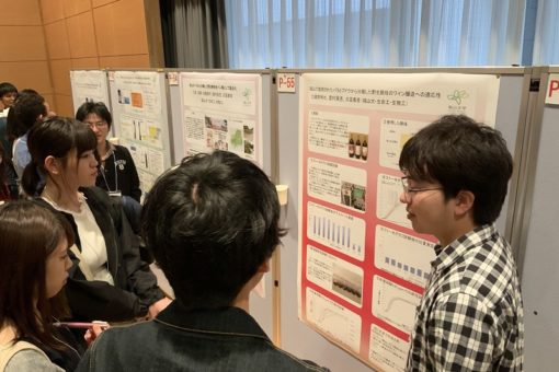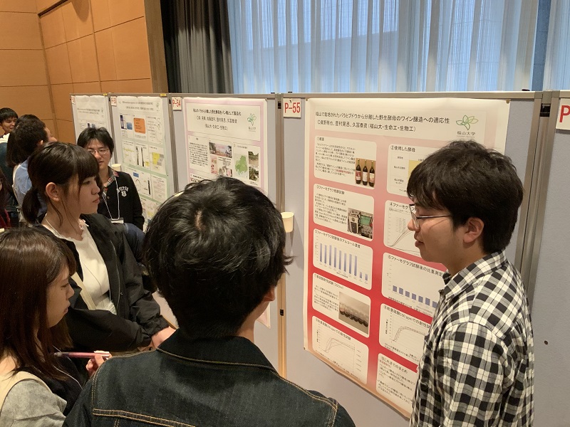 翌日は、いよいよ今回の目的である私たちの研究発表でした。私たちの研究室からは全員が発表し、参加者へ研究内容を紹介した上で、盛んにディスカッションしていました。研究内容は、酵母の特性や特徴を解明する基礎研究が2題と、酵母を応用した発酵食品についての研究が3題でした。基礎研究においては、本研究室で記載した屋久島発の新種酵母について機能解析をしており、まだまだこれから発展する内容で、来られた学生や先生方にも物怖じすることなく発表していました。
