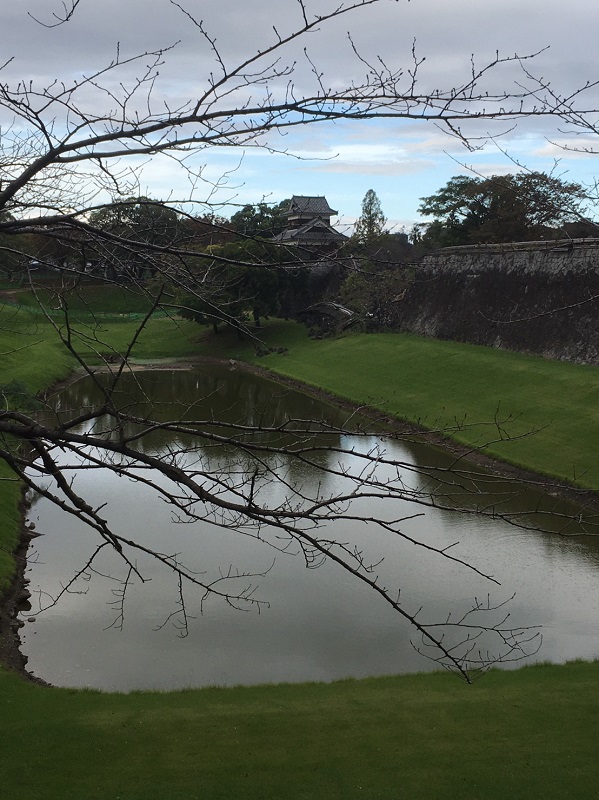 研究会後は、修復中の熊本城へ行きました。熊本は2014年に大きな地震があり、甚大な被害が出ました。熊本城は特にひどい状態で、現在もほとんどが立ち入り禁止となっており、見ることができるのはほんのわずかとなりました。城に一番近いところまで登ることになったのですが、これが遠いこと遠いこと。私に城を攻めることはできないだろうなと思った熊本城でした。