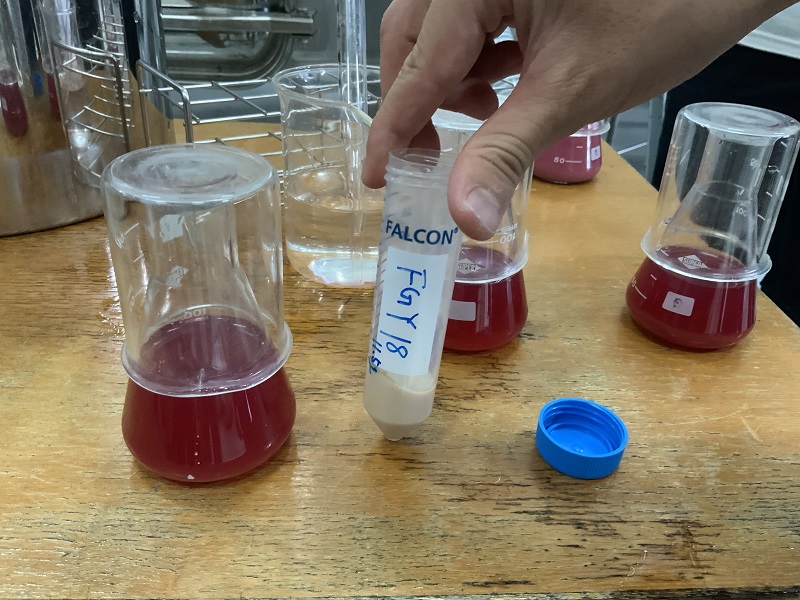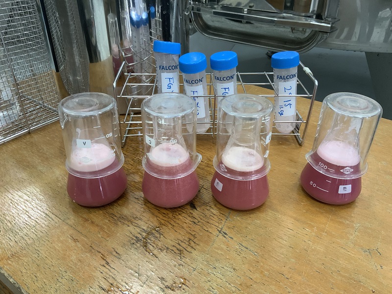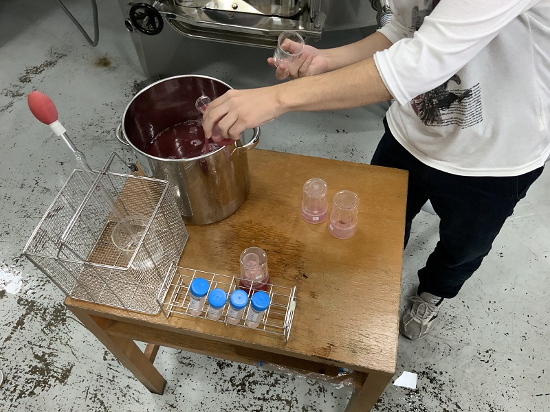 生物工学科の豊村です。少し前の話ですが、本年度も「せらワイナリー」にて備後ワインを仕込むために、研究室で培養した酵母を持って、醸造を開始してきました。今回は、その様子を簡単にお伝えします。