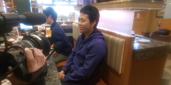 食事の合間には、広島ホームテレビさんからインタビューを受けました。少し緊張気味で笑顔がぎこちない…。放映は11月13日になるそうです。今から楽しみです♬