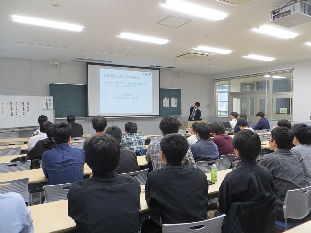 情報工学科では、11月13日(水)に先輩やOBによる「就職体験発表会」、また11月18日(月)に地元企業である株式会社エフピコの「企業見学会」が実施されました。