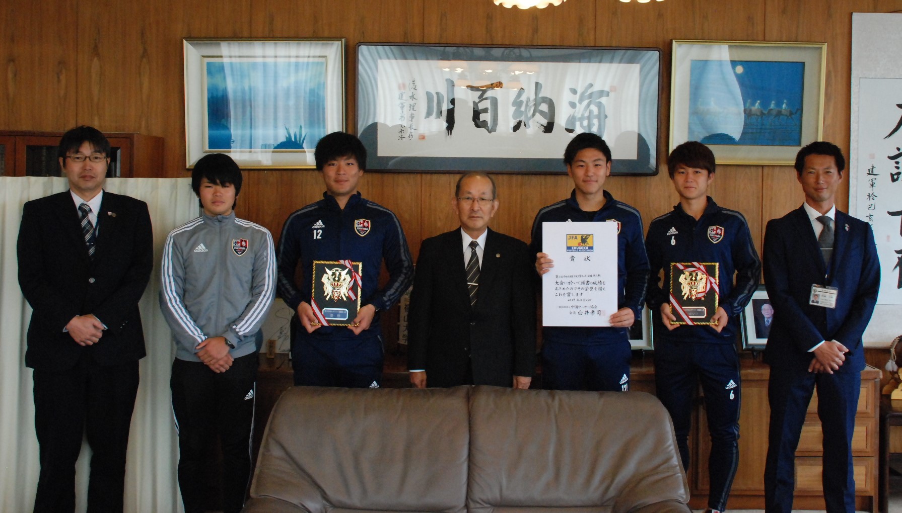 このことについて、学友会サッカー部の代表者(6名)が理事長及び学長へ報告に訪れました。