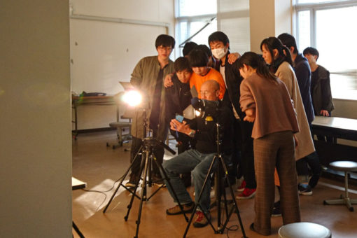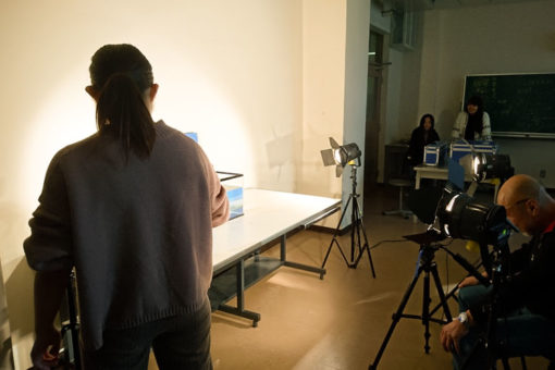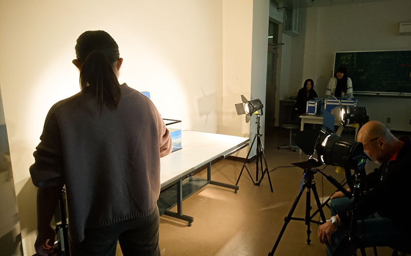 右にいるのが中嶋教授です。カメラを覗き込んでいます。照明の先には…