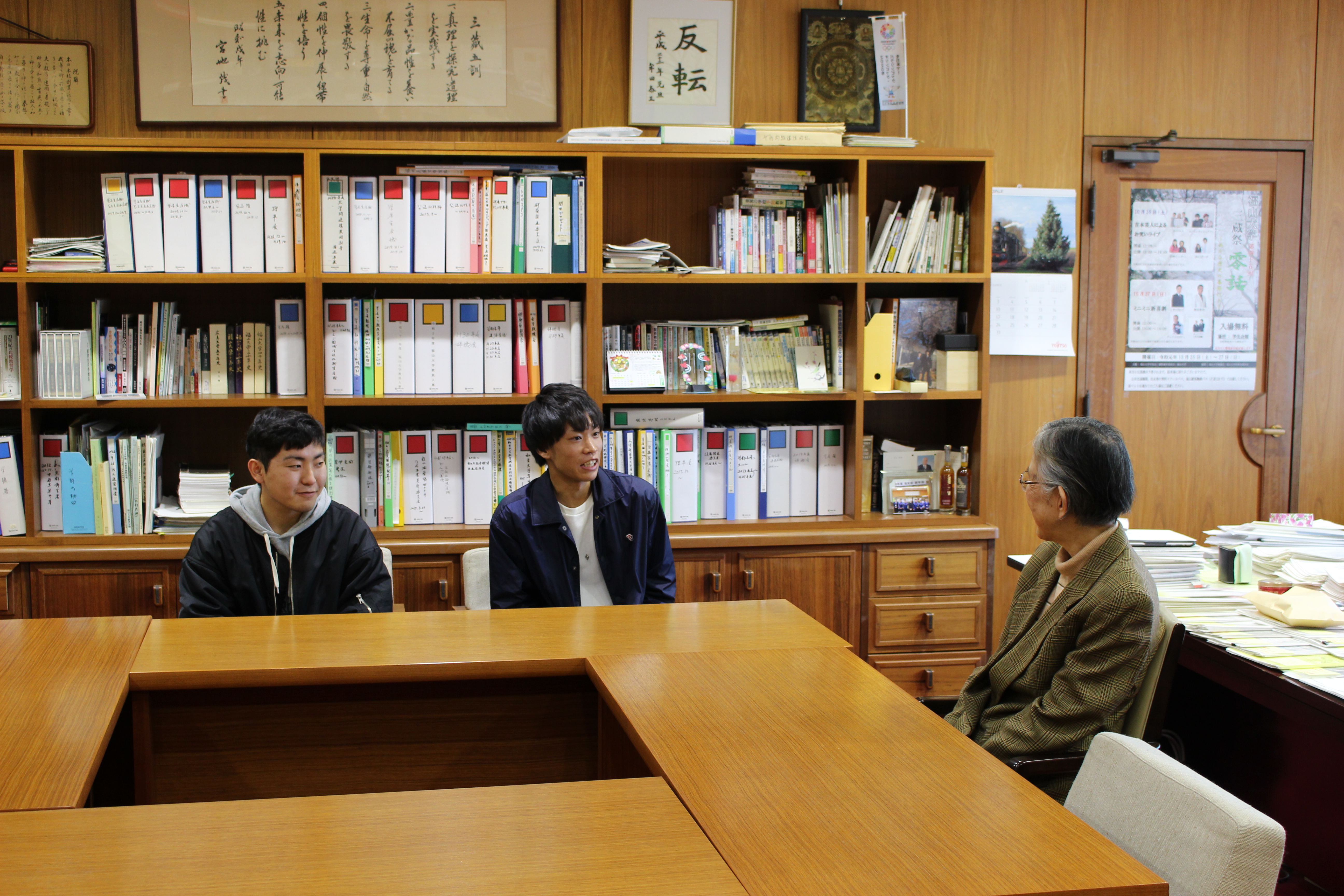 三谷君はこの留学の成果を松田学長に報告するため、担任の萩野教授と早川国際センター長、そして留学中にサポートしてくれた先輩の操田君(ヴェリコ・タルノボ大学への派遣留学の経験学生)とともに、12月9日(月)に学長室を訪問しました。
