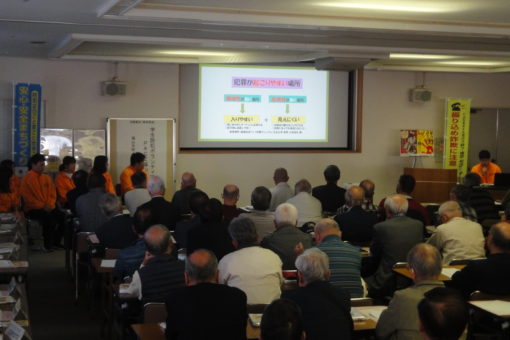 地域防犯活動リーダー研修会は、安全なまちづくりのために、地域でどのような防犯に関する取り組みが行われているのかを地域の方々に紹介する会です。