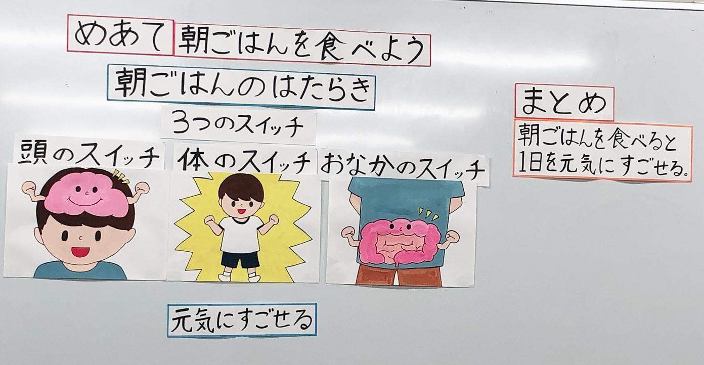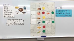 小学校実習では食育を実践するため、食育に使う教材(黒板に貼り出す媒体や配布資料)を手作りしました。