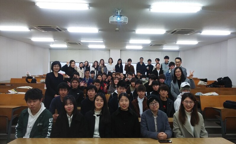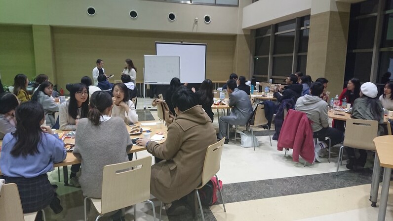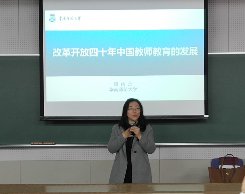 19日午後には訪問団団長の施雨丹副院長による講演が行われ、文化大革命以後の改革開放政策の下で、中国の教師教育が歩んで来た道のりについて、日中両国の学生が仲良く学びました。