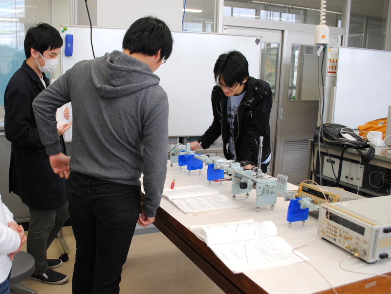 工学部の授業の中で、もっとも特徴的で学生の皆さんにとっては手強いのが学生実験です。2年生では「スマートシステム基礎実験」、3年生では「スマートシステム応用実験」で、電気電子に関する実験、メカトロニクスや制御に関する幅広い実験を行います。しかし、実験結果を検証し、考察し、文献を調査しまとめることはなかなか大変な内容で、皆さん苦戦することも多いですね。ものづくりの楽しさを体験するだけでなく、このような厳しいトレーニングも一流のエンジニアになるためには必要なことなのです。