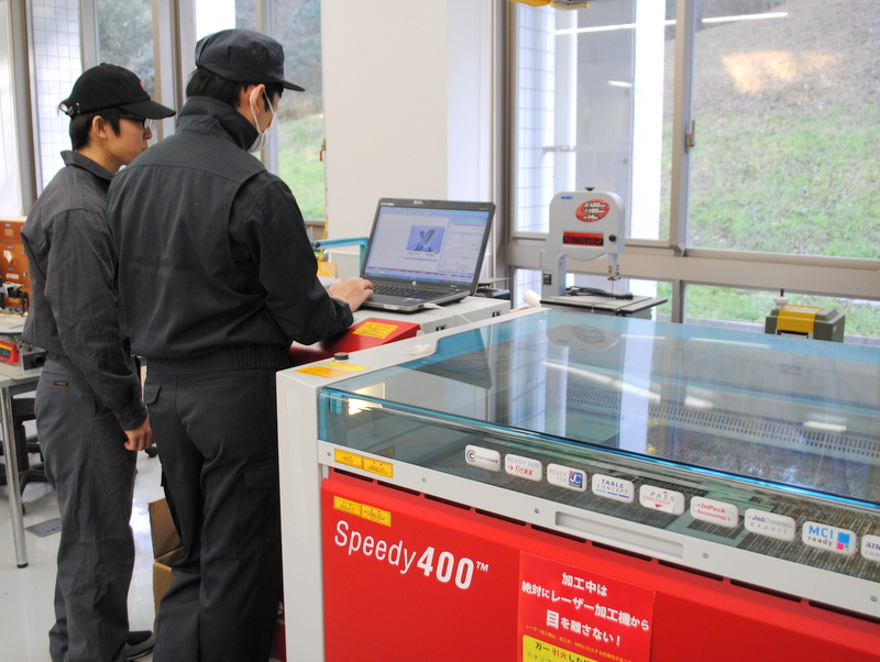CADでデザインしたものをレーザー加工機を使って切り出していきます