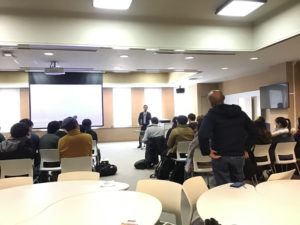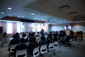 メディア・映像学科の阿部です。12月16日(月)の「基礎ゼミ」において、ドキュメンタリー映画の配給や制作を行うユナイテッドピープル株式会社の関根健次氏をお招きし、映画メディアの可能性についてお話いただく機会がありましたので、報告します。