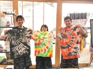 <イベント当日に着るオーガナイザーTシャツを準備している3人>