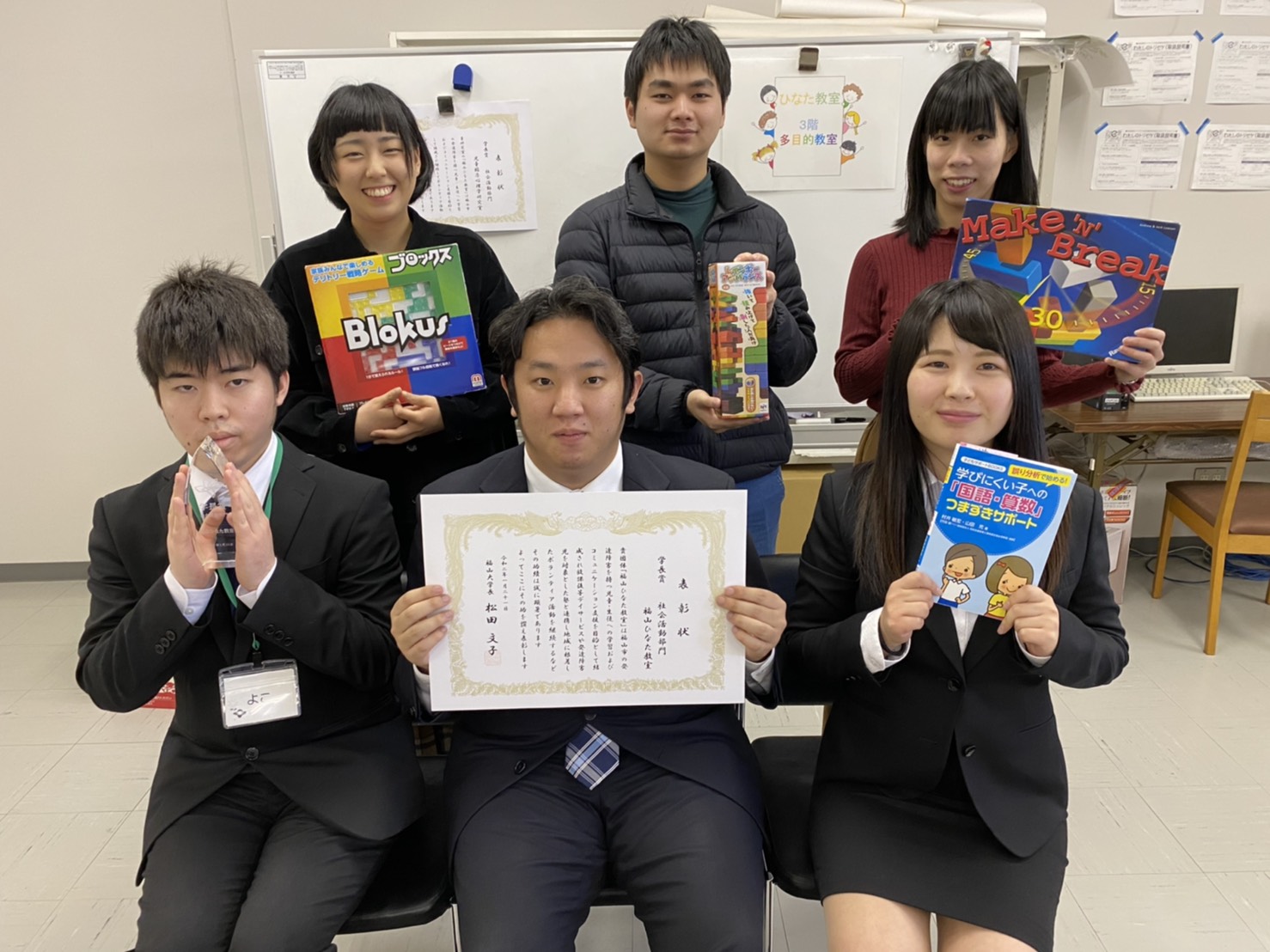 このような栄えある賞状を頂けると聞いたときは大変驚きましたが、私ゼミ長を始めゼミ生が日々行動してきた結果がこのような形で実を結ぶことができ、大変うれしく思っております。ひなた活動で経験してきたことが私の就職においてとても重要な要素であったことからも、とても思い入れの深いボランティア活動です。頂けた賞状に恥じないよう、今後もメンバーで協力しながら、ひなた教室がより良い方向に発展していけるように尽力していこうと思います。