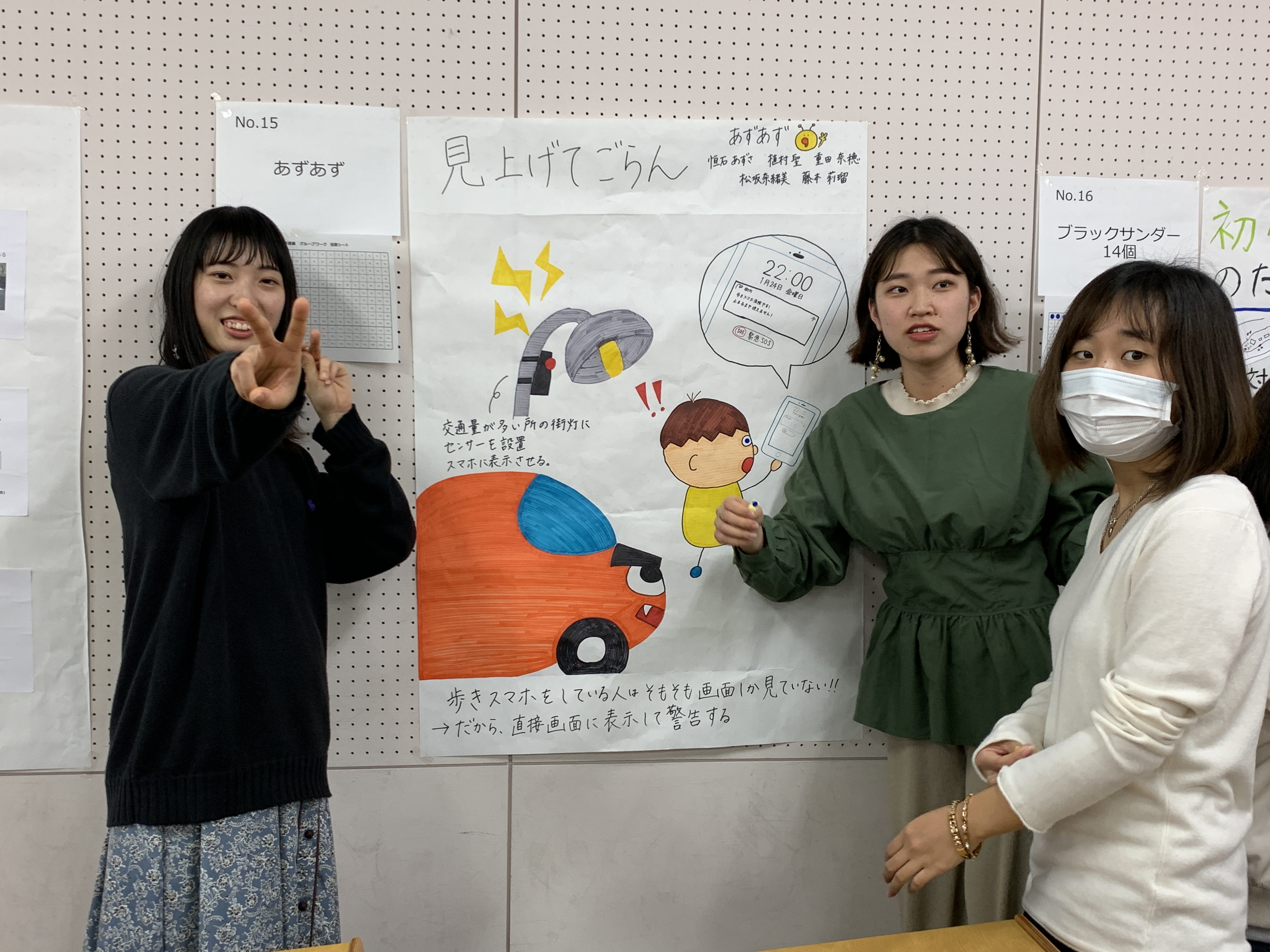 歩きスマホによる事故を防ぐために交通量が多く危険な場所にセンサーを設置し、歩行者が見ているスマホ画面に強制的に通知を送り、警告するシステム作りの提案もありました。