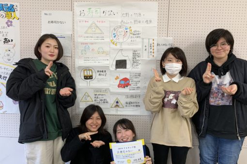 「あったらいいな、こんな標識」をテーマに様々な楽しい標識を提案したグループの皆さんが受賞しました。