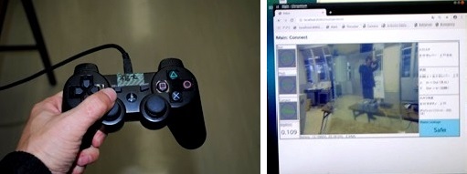 上から制御層で、水深の計測やモータの制御などを行います。2層目は水平バランスそうです。ここには前後左右に動く錘があり、水中ドローン本体の傾きを制御します。3層目は垂直バランス・電源層です。先ほどの油タンクの油を移動させるポンプとバッテリーがあります。4層目はケース内の油タンクです。 コントローラはこれですね。モニターに映るドローンからの映像を頼りに操縦します。