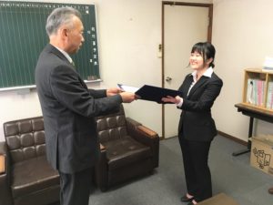 ちなみに、この賞状を持って、喜びを学長室へ報告に行きました。