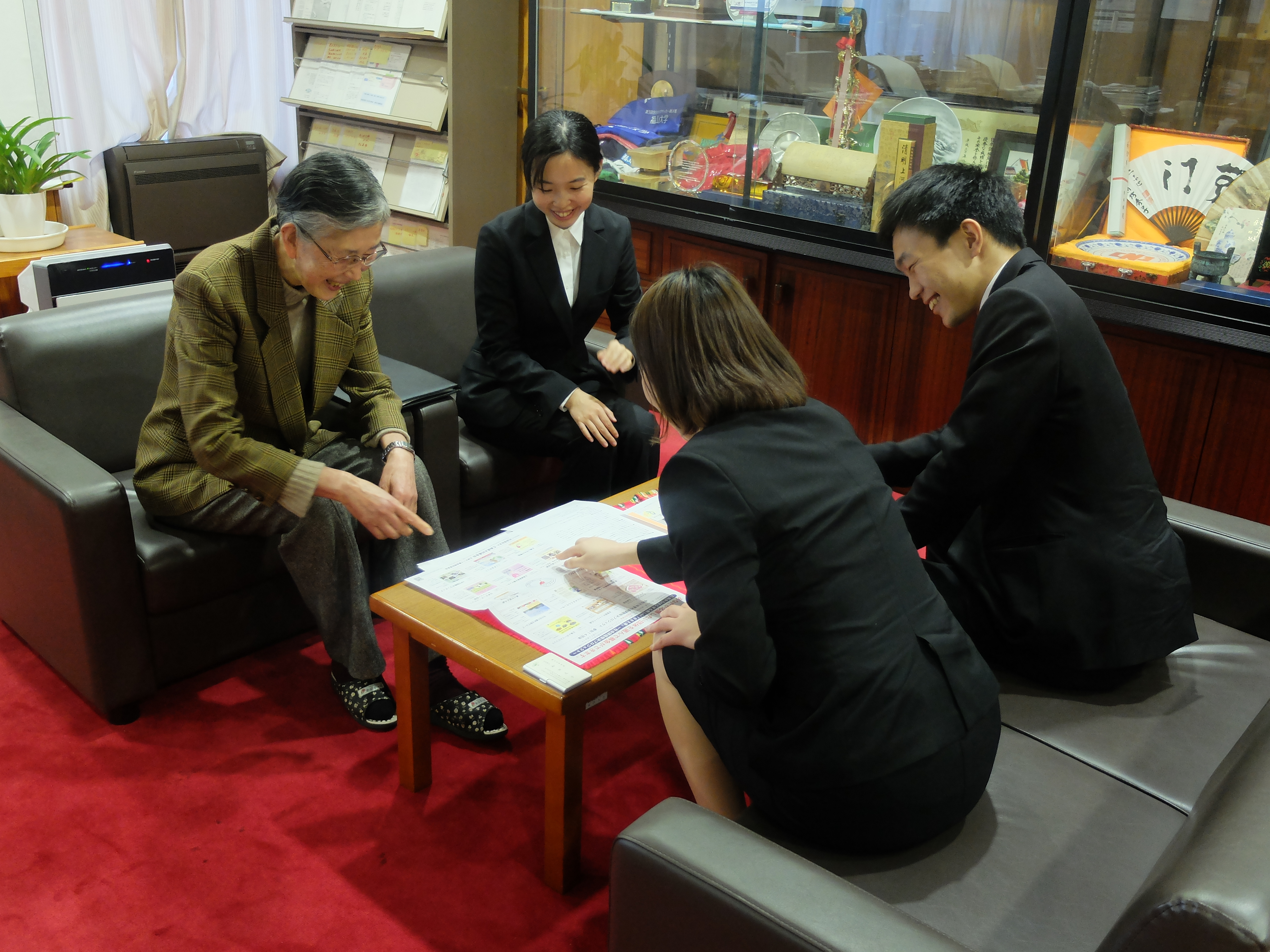 説明に行ったのは、PACE福山支部代表の柿木里予さん、副代表の工藤孝明くん、そして社会課題解決プロジェクトリーダーの廿枝真由さんです。3名ともに、新体制の役職者として初めての活動となります。