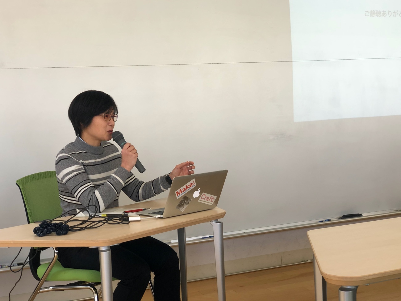 講師に来てくださったのは、岩国市役所の都市開発部建築指導課で働いておられる佐々木園子さんです。講演のテーマは「建築技師の仕事」です。佐々木さんは、本学の大学院を修了後、建築技師をされており貴重なお話しをたくさんお伺いできました。