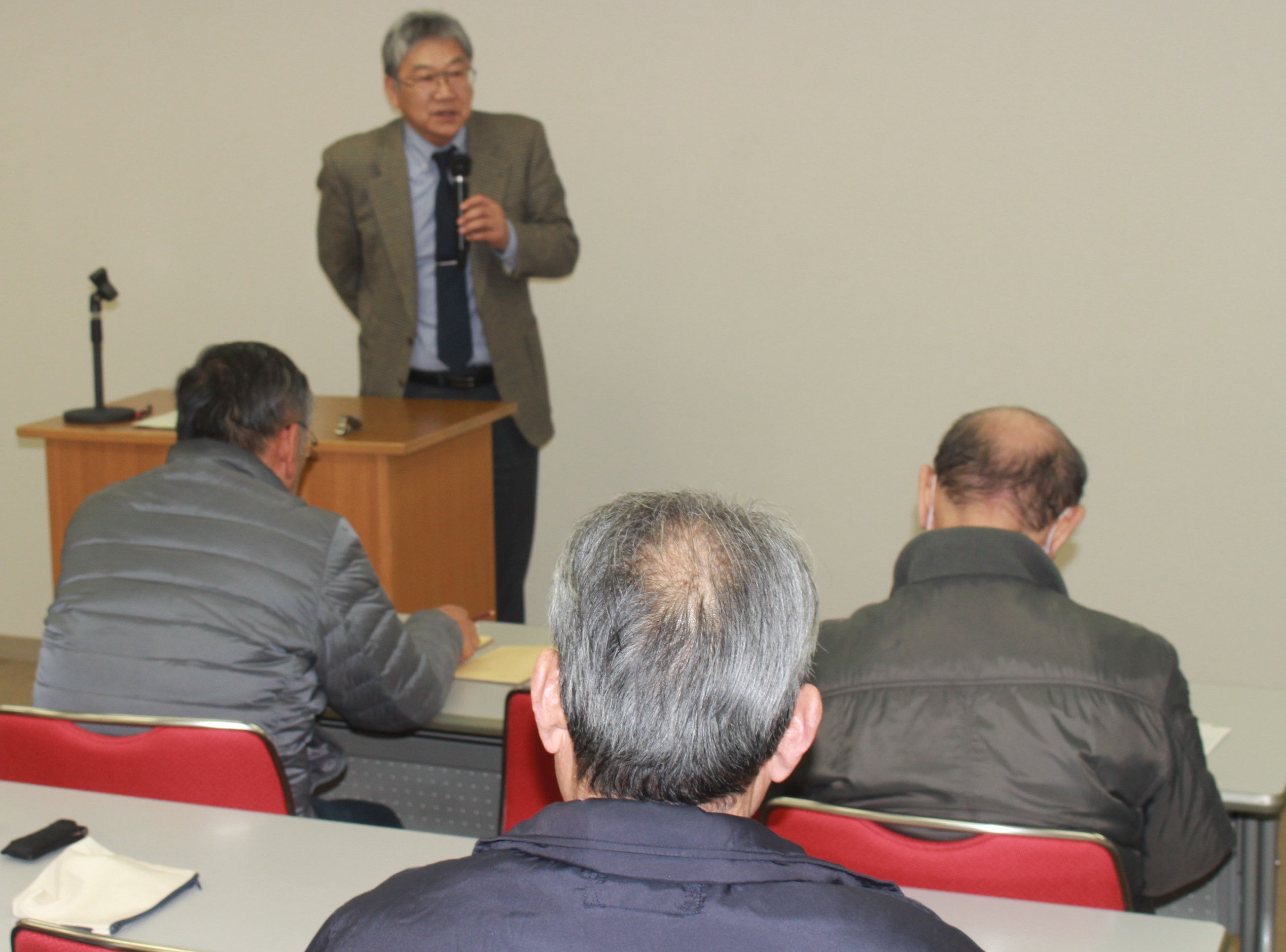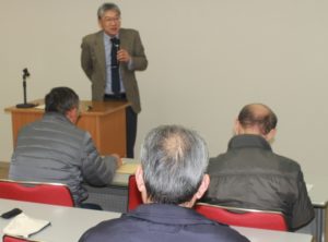 次に、地域文化の研究及び井伏の同時代の作家・宮沢賢治との関係を視野に入れな がら研究を続けてきた青木教授が「高田類三の文学活動と高田家について」と題して、展示の補足説明も絡めながら高田類三の文学とその文学を生む背景である高田家の歴史について話を行いました。そこでは、主として2つのことを語りました。第1は、井伏の習作時代における高田類三との文学の共通点についてです。早稲田を休学した井伏が、大正10年10月に因島から類三に出した手紙にあった志賀直哉への注目が、類三の日記の大正10年9月の記述の中の志賀への注目と共通していることを指摘、そこには志賀や中村憲吉(当時郷里で家業に携わっていた)など、同時代の文学の新しい傾向への注目が見られました。また、そこには「童話」というジャンルへの関心など、当時の若者たちの文学的表現への新しい動きを指摘しました。