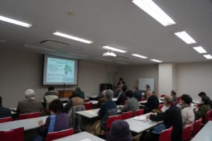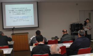 当日は、新型コロナウィルスへの対応のため、両会場の入口にはアルコール消毒液を設置して手指消毒への協力を呼び掛けるとともに、開始後30分で会場の窓やドアを開き、換気をする対応を取りました。当日は、そのような事情にも関わらず40名あまりの参加があり、本研究の成果について熱心に聞かれました。
