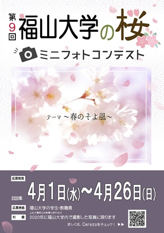 桜の便りが待ち遠しい季節となりました。今年も第9回目となる「福山大学の桜」ミニフォトコンテストを開催します。