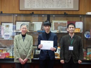 情報工学科の黒木です。3年次から続けてきた研究をICIPRoB2020で発表してきました。今回が初の英語論文の投稿だったので、論文の執筆や発表準備には多くの時間がかかりましたが、結果として「Best Student Paper Award」を受賞することができました。指導教員の池岡先生、建築学科の伊澤先生、海洋生物科学科の有瀧先生と藤川さんをはじめ多くの方々に支えられ、今回のような貴重な体験をさせていただくことができ、本当に感謝しています。春からは他大学の大学院に進学しますが、進学先でも本学で学んだことを生かして頑張りたいと思います。
