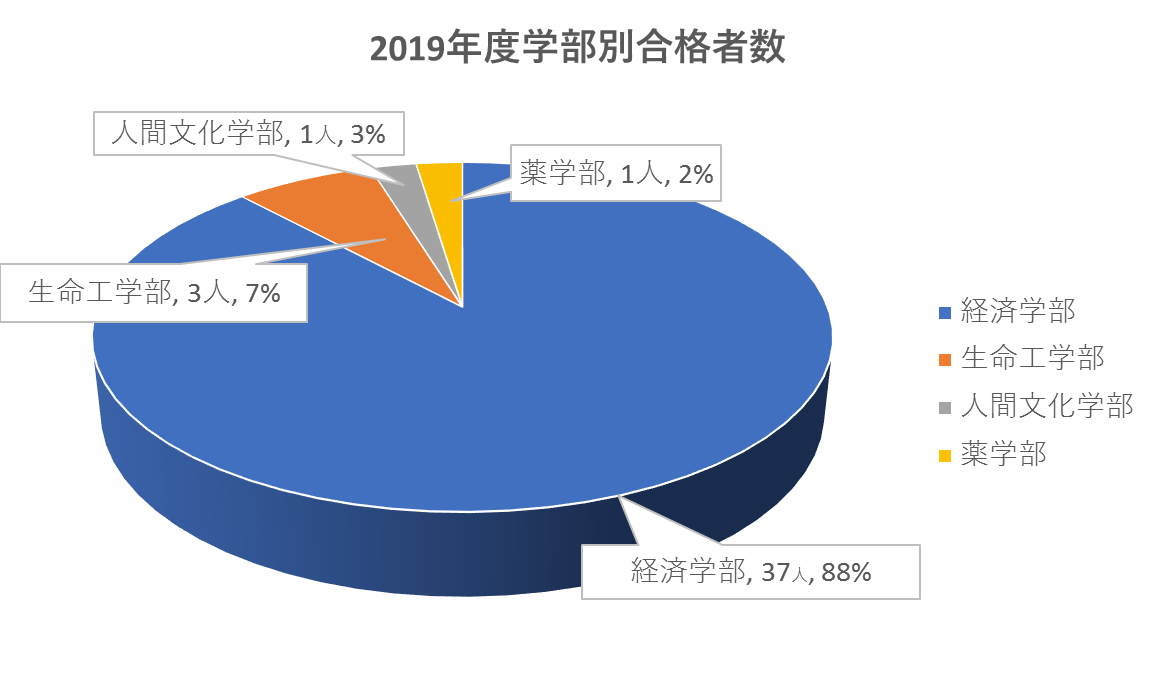 このように、日商簿記検定試験の合格者は経済学部の学生が大多数を占めていますが、本対策講座では、経済学部のみならず他学部の学生にも広く門戸を開き、日商簿記検定合格に向けた入念な指導を行ってきました。こうした取り組みによって、今年度は「人間文化学部」、「生命工学部」、「薬学部」といった他学部からも合格者が生まれることとなりました。
