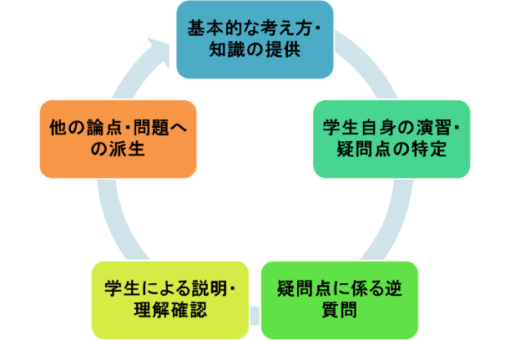 こうしたコーチングベースの指導体制を取る場合、必然的に一人の学生に対してかける時間を多く割かなくてはなりません。なぜならば、この指導においては「基礎的な考え方の伝達→質問の確認→学生による再説明→その他の質問事項への対処」というプロセスを辿るために、時間を割かなければその効果が減少してしまうことが課題です。