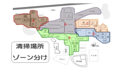 5月21日,経済学部・人間文化学科・大学教育センターの学生諸君と教職員の皆さんによる1号館,体育館,駐車場等のAゾーンの美化運動を皮切りに,本キャンペーンが開始されました.大学より支給されたキャンペーン必須アイテムの軍手やビニール袋,ほうきを使って,ワイワイガヤガヤと楽しくコミュニケーションを取りながらの清掃活動でした.