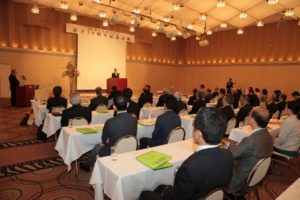 ご挨拶やご祝辞を頂戴したのち、福山大学経済学部早川達二経済学科長より「経済発展における中国モデルの成果と課題」、丁志傑対外経済貿易大学副学長より「新時代の中国金融改革開放と発展の展望」と題しご講演いただきました。