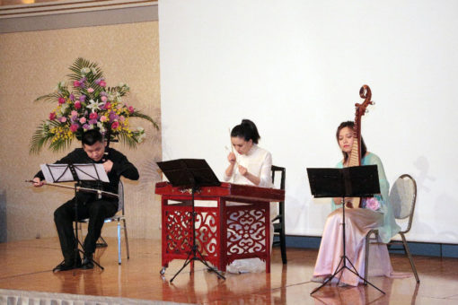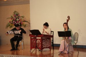 続いて上海師範大学音楽学院の3名の講師より、中国の伝統楽器である琵琶、二胡、揚琴を演奏していただき、式典がより華やいだものになりました。