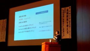 山本先生からは予想どおり、さまざまな興味深い遠隔教育をめぐる実践の体験が語られました。いかにして教職員の意識を高めたか、遠隔授業にまつわる種々の困難をどう乗り越えたか等々、限られた講演時間の中で見事に纏められたばかりか、福山駅からの車中で私との会話を承けて、本学により役立ちそうな内容のスライドを急きょ現場で予めご準備いただいたものに追加して下さるというサービスぶりでした。話の中では、本学のようにLMS、学修マネジメントシステムであるCerezo(=社会での通称はmanaba)やZoomに限定せず、かなり多種多様なオンラインツールの活用実態に触れられました。また、「コマシラバス」と命名された初等中等教育では当たり前の授業ごとの「指導案」にあたる詳細なシナリオの事前作成の効果等は、特に印象に残りました。
