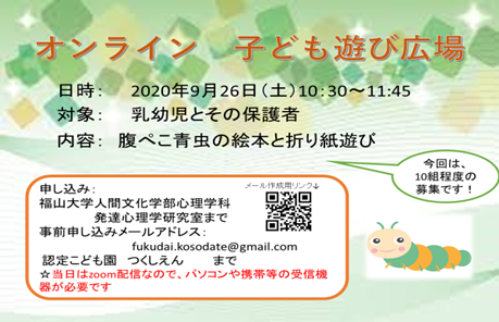 9月26日(土)、心理学科発達心理学研究室の3年生が29号館2階の会議室にて、オンライン子ども遊び広場を実施しました。