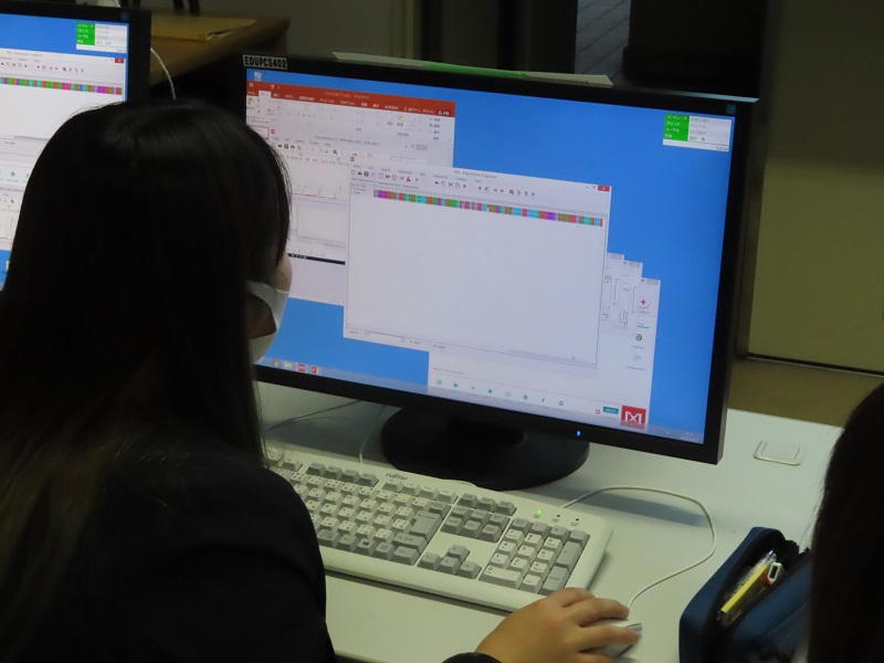さて、結果はどうだったでしょうか?100%成功とはいきませんでしたが、各班、DNAの情報を得ることができました。得られたDNAの情報を国際DNAデータベースで検索してみると、自分の取ったネズミや虫が結果として出てきました。成功です。このようにして、生物工学科では野生生物のDNAの分析技術を身に付ける実習を行っています。いろいろな分野に応用可能な大切な技術です。そして、何よりも面白いですよ!