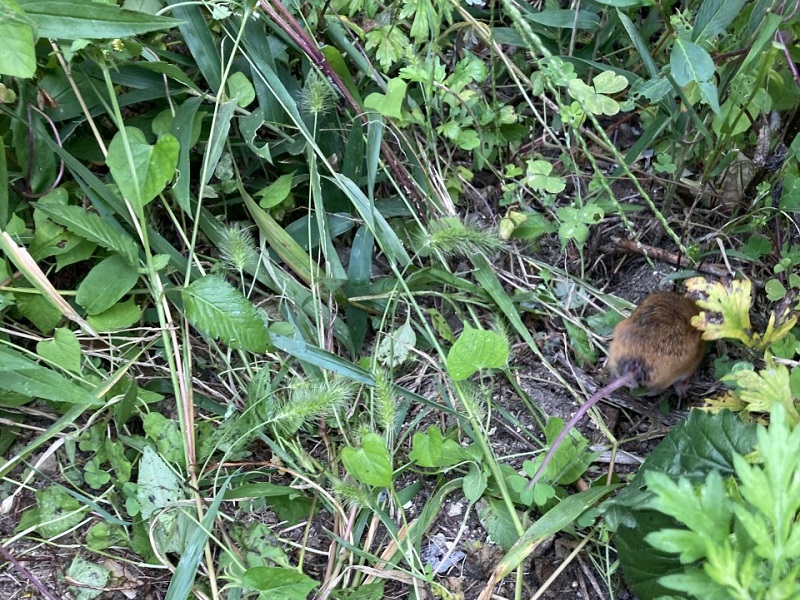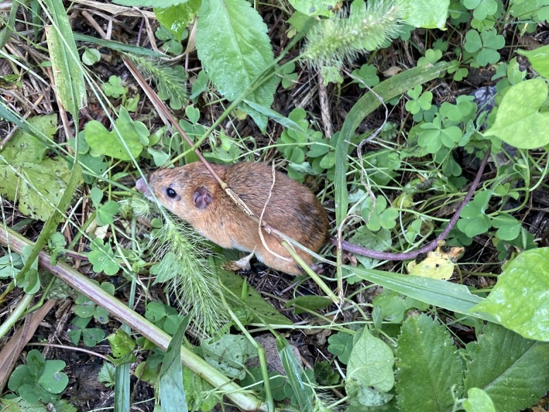 残念ながら、最初に設置したワナではネズミが捕まらず、コロナ禍のせいで実習の実施が夏から秋に移動になったことを恨みましたが、その後、何度か挑戦することで、3頭のアカネズミを捕獲することができました。DNA分析用に少しばかり組織をいただき、捕まえた場所にリリースしました。元気に森に帰っていきましたよ。元気でな―。もう捕まるなよー。